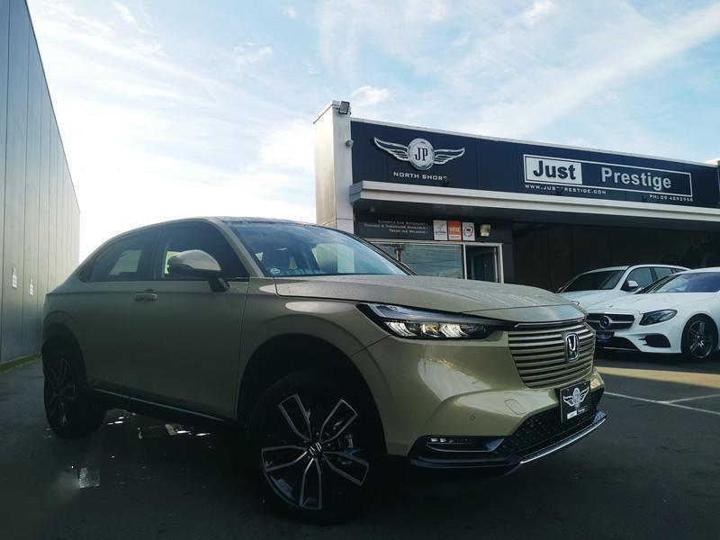 What truly makes this vehicle stand out is its rare Khaki paint colour, a factory option only available in the Japanese domestic market (JDM). This colour is not offered in international markets, making this Vezel a unique and eye-catching choice on New Zealand roads.