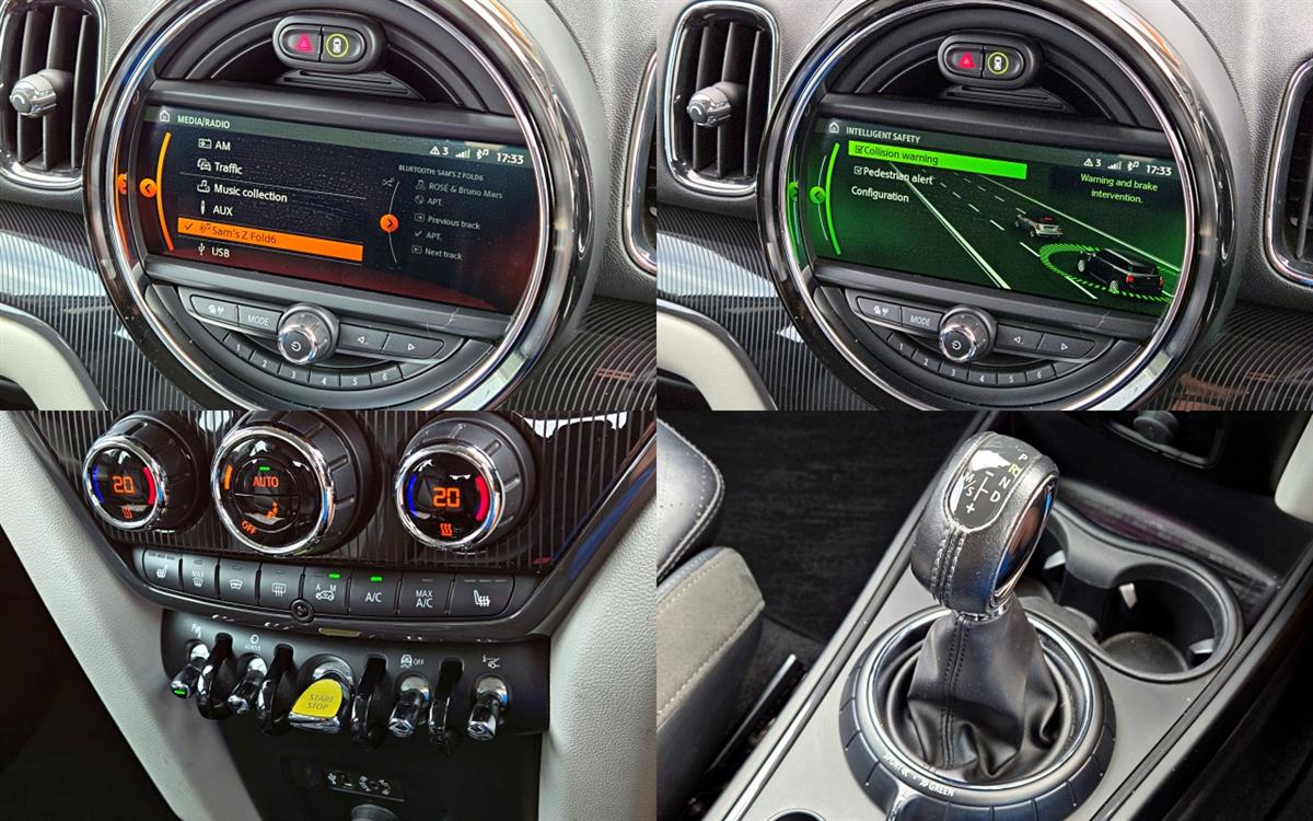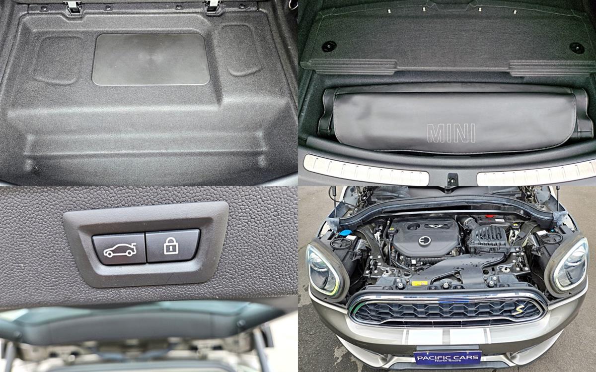 2nd Generation F60 (New Shape Current Model), 221 hp (165 kW) Combined Power Output, 6-Speed Automatic, Plug-In Hybrid, eDrive, SE Crossover SUV All 4 (4WD), 2 Tone Grey, Harman Kardon Sound System, Heads-Up Display, Special Dark 18" Factory Alloy Wheels, Premium Leather Interior, Premium Leather Seats, 8 Way Power Seats w/ 2 Position Memory and Lumbar Support, Heated Seats, Centre Armrest, Mini Driving Modes, Parking Sensors (PDC), Park Assist, Factory Reversing Camera w/ Guidance, Driving Assist, Active Pedestrian Protection, Collision Warning, Adaptive Cruise Control (Active Cruise Control), Auto LED Headlights w/ Extended Scopes, Fog Lights, Rear Fog Lights, Premium Leather Multi-function Steering Wheel, Automatic Air Conditioning Climate Control, Factory Alarm, Immobiliser, Smart Key (Comfort Access) - Keyless Entry and Start, Roof Rails, Electronic Stability Control, Electronic Parking Brake, ISOFIX, Auto Power Tailgate, Auto Wipers w/ Rain Sensor, 8 Airbags Including Side and Curtain Airbags, Tyre Repair Kit, Factory Bluetooth Audio/Handsfree Call, USB, Aux in, Mood Light, Parcel Cover, 3 Way Split Folding Seats.