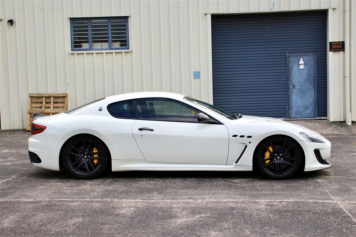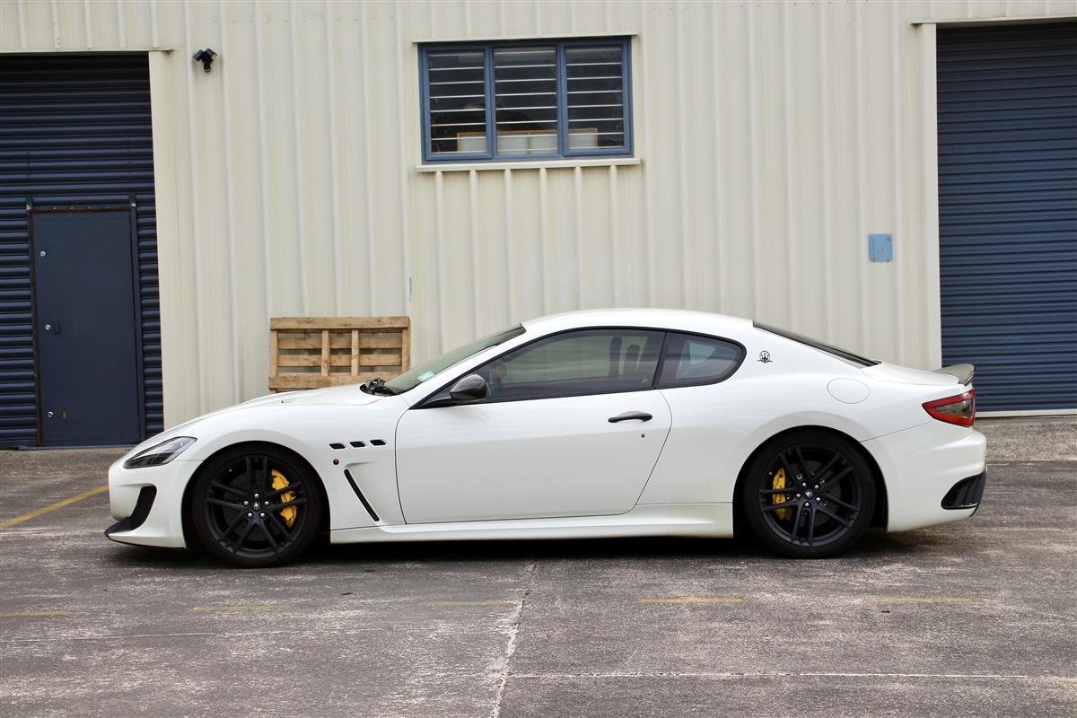 2014 NZ New Maserati GranTurismo MC Stradale with more powerful 4.7L V8 engine (450 PS or 331 kW or 444 hp), friction reduction accounts for the increase, says Maserati, thanks to the strategic use of “diamond-like coating", an antifriction technology derived from Formula 1. It is also 110 kg lighter from the GranTurismo, and more aerodynamic than any previous GranTurismo model .In addition to two slits in the bonnet, the MC Stradale also receives a new front splitter and rear air dam for better aerodynamics, downforce, and improved cooling of carbon ceramic brakes and engine.