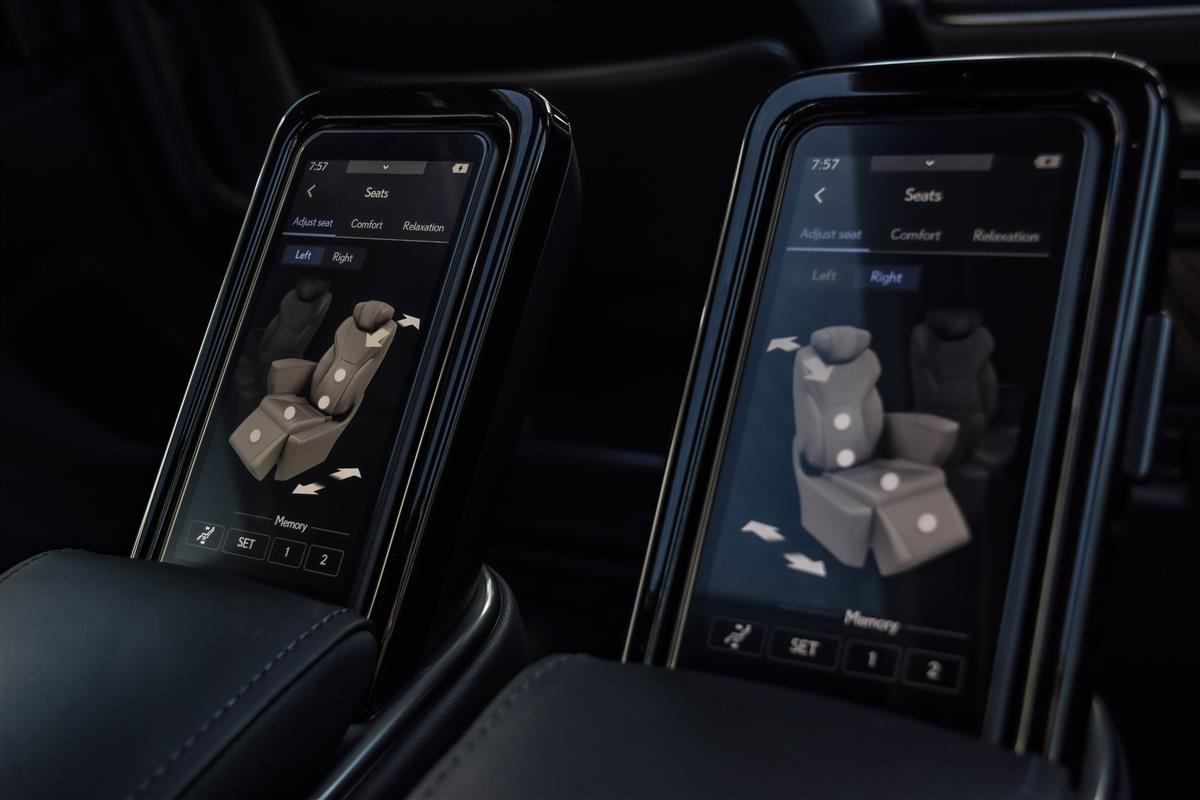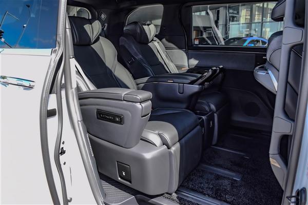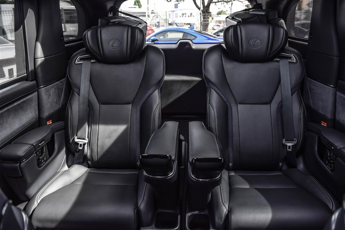 The LM 500h is a Six-seater with two captain’s chairs in the second row that can recline all the way flat. The second-row seats also have built-in ottomans, a massage function, and a refrigerator. The cabin is also equipped with a panoramic sunroof, a 23-speaker Mark Levinson sound system, and a rear-seat entertainment system.