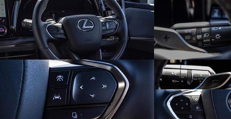 The LM 500h is powered by a 2.4-liter turbocharged I4 engine paired with an electric motor for a combined output of 348 horsepower. It comes with all-wheel drive and a continuously variable automatic transmission.