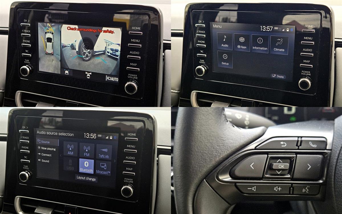 The Newest Model, Top Grade G Model, Lane Tracing Assist (LTA), Pre-Collision System (PCS), Blind Spot Monitor (BSM), Parking Assist, Rear Cross Traffic Assist (RCTA), Parking Support Brake (PKSB), Road Sign Assist (RSA), Advanced Start Notification (TMN), DSC (Reverse), 360 Deg. Around View Monitor w/ Guide and Warning, Front Warning Camera, Full Parking Sensors, Dynamic Radar Cruise Control, English Infotainment System, English Instrument Cluster, Miracast, Factory Bluetooth Audio/Handsfree Call, NZ Radio up to 95MHz, USB, Premium Leather Multi-Function Power Steering Wheel, Auto Headlights, Auto High Beam, Electrically Adjustable Auto Folding LED Winker Mirrors, Smart Key - Keyless Entry and Start, Auto Climate Control, Drive Mode, EV Mode, Electronic Stability Control, 6 Airbags, ISOFIX, 6:4 Split Folding Rear Seat, Centre Armrest for Rear Seat w/ Cup Holders, Tyre Repair Kit, Weather Shields, Factory Tinted Privacy Windows, Spoiler, Rear Wiper, Factory Security System, Immobiliser.