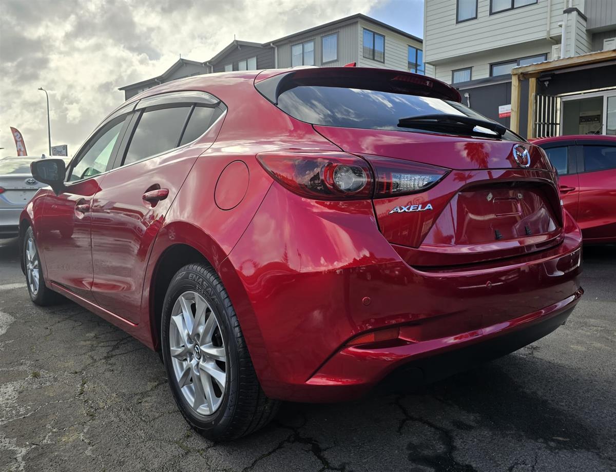 Turn heads with the 2017 Mazda Axela in vibrant Red, combining sporty performance with everyday practicality. Equipped with Cruise Control, Lane Assist, and Parking Sensors, it offers a smooth and safe driving experience. Enjoy modern comforts like Push Start, Reversing Camera, Factory Mags, and the fuel-efficient I-Stop Model.