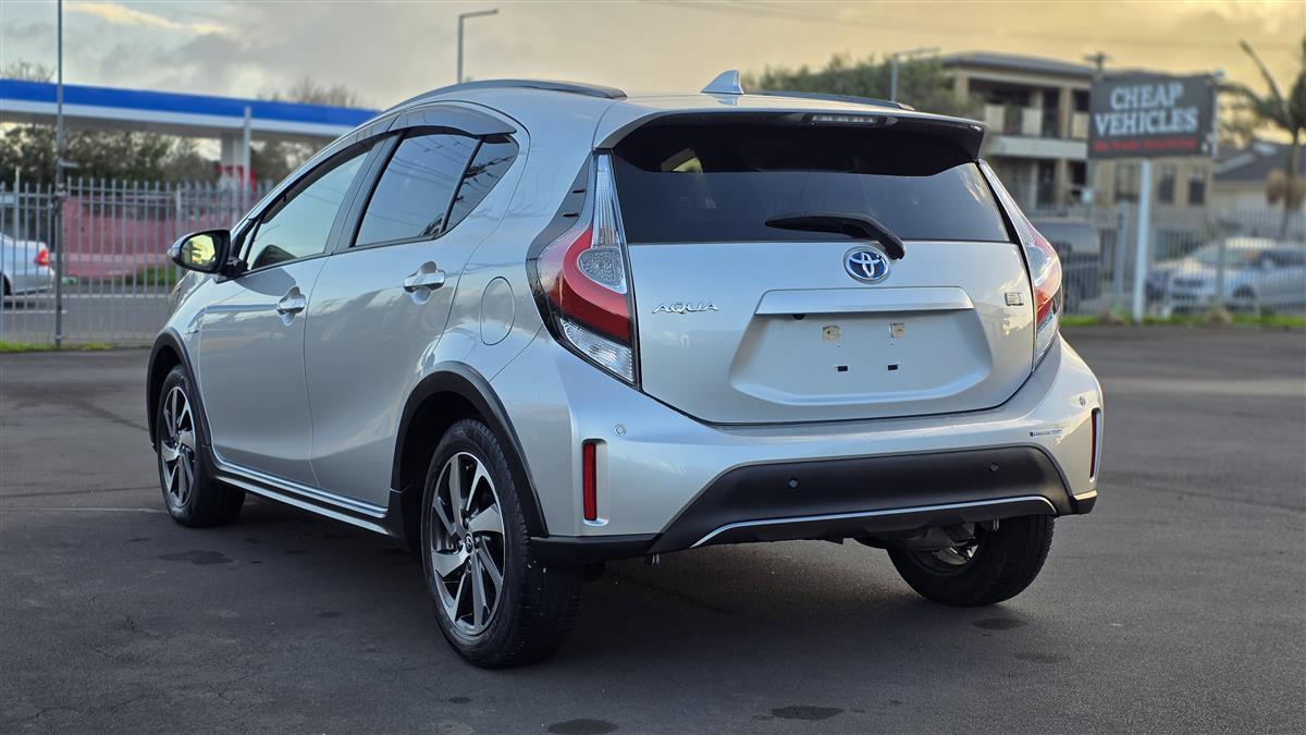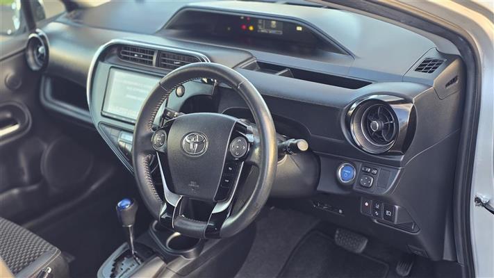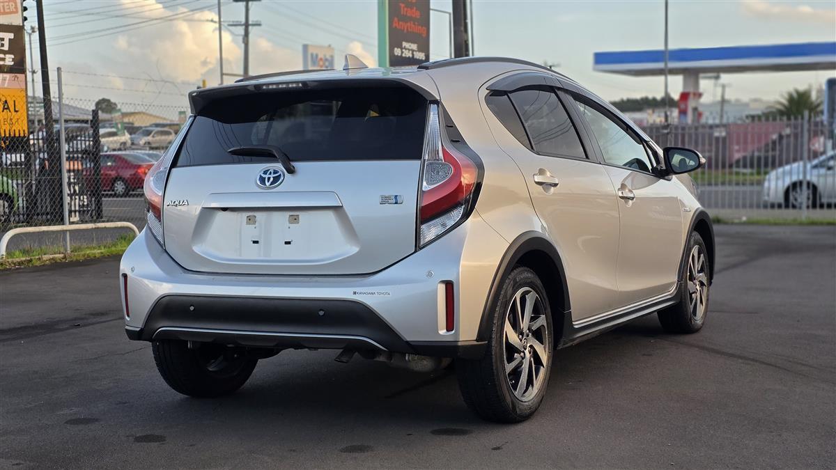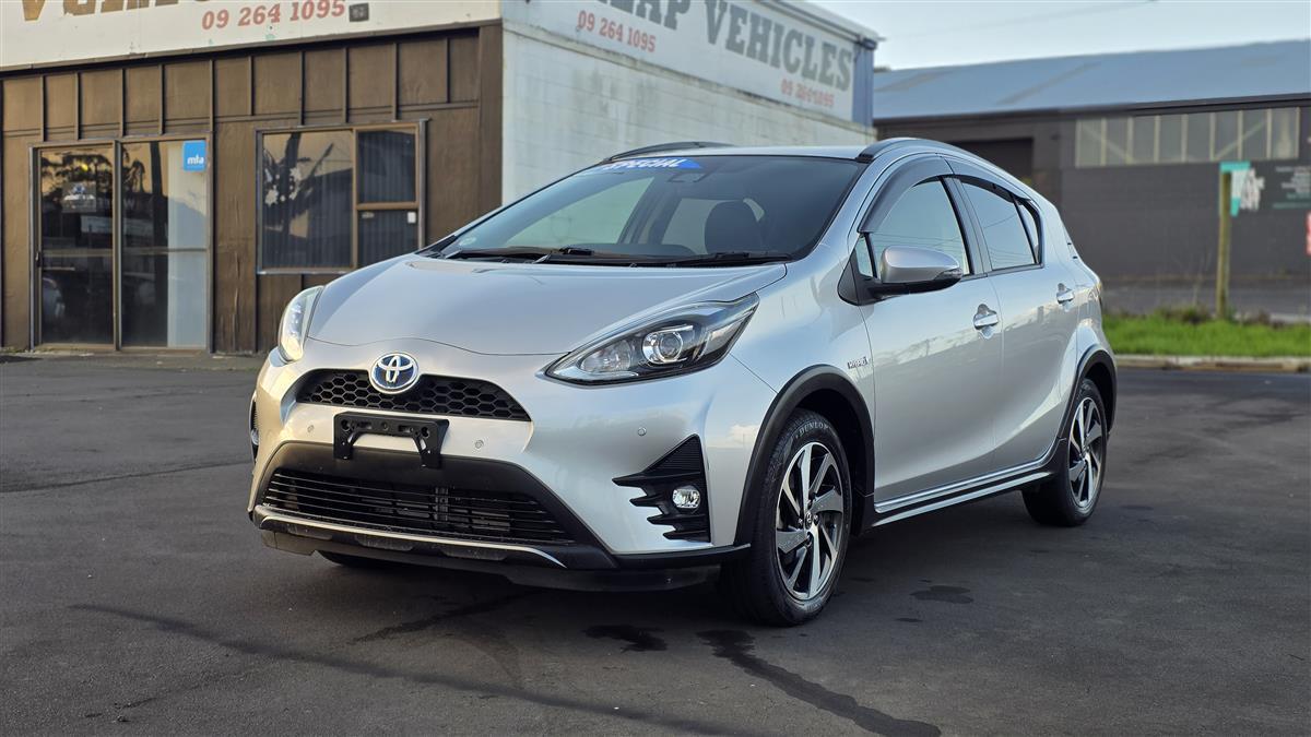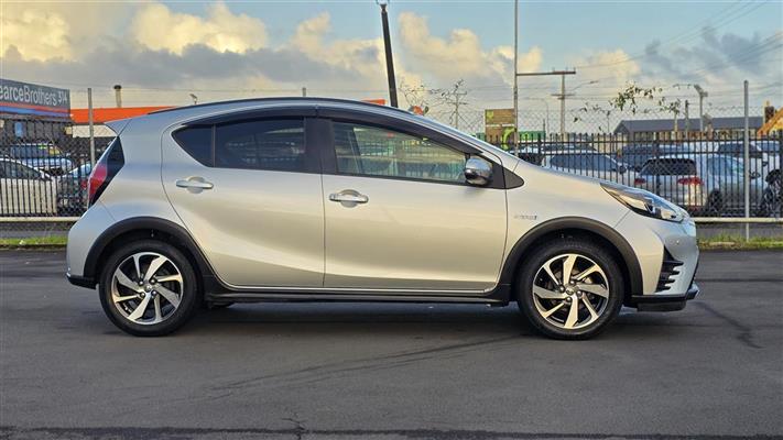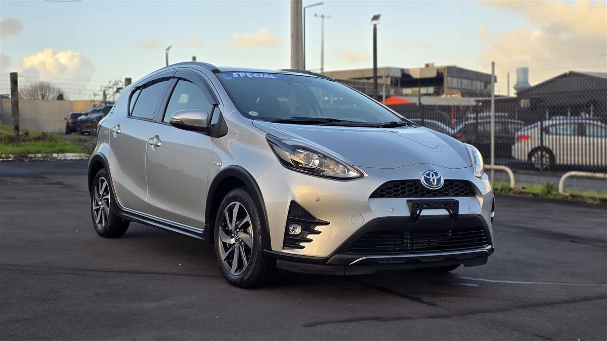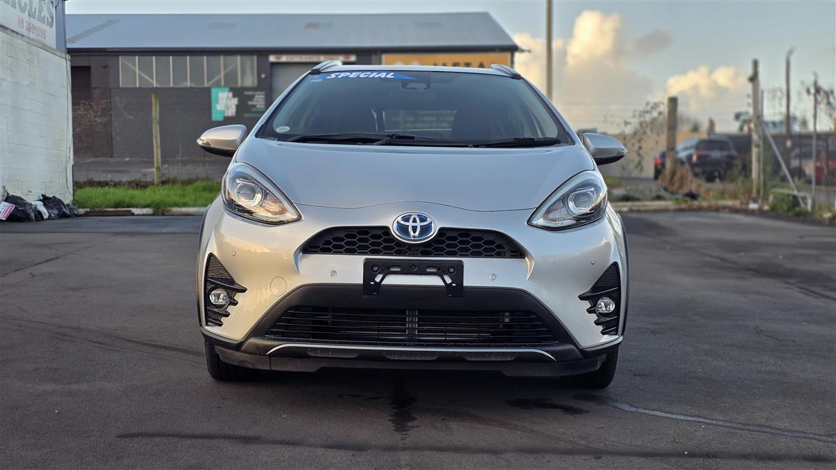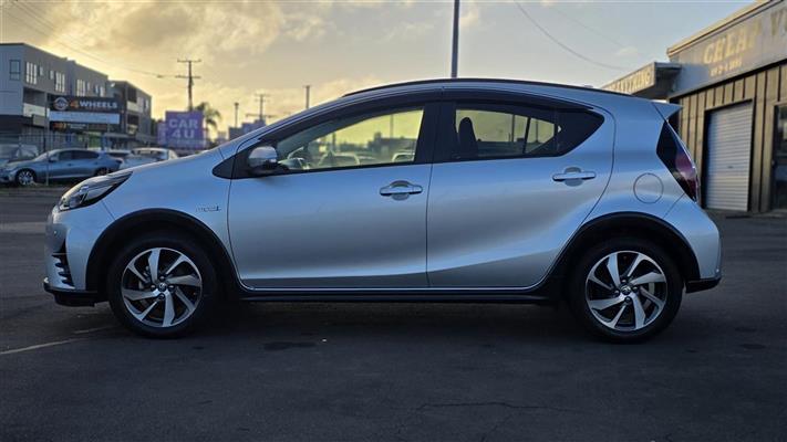 The 2019 Toyota Aqua Crossover in sleek silver offers a perfect blend of style and practicality. Equipped with a push start system for convenience, it features comfortable heated seats, making every drive enjoyable, whether it's a chilly morning or a long road trip. With its hybrid efficiency and compact design, it's perfect for both city driving and weekend adventures.
