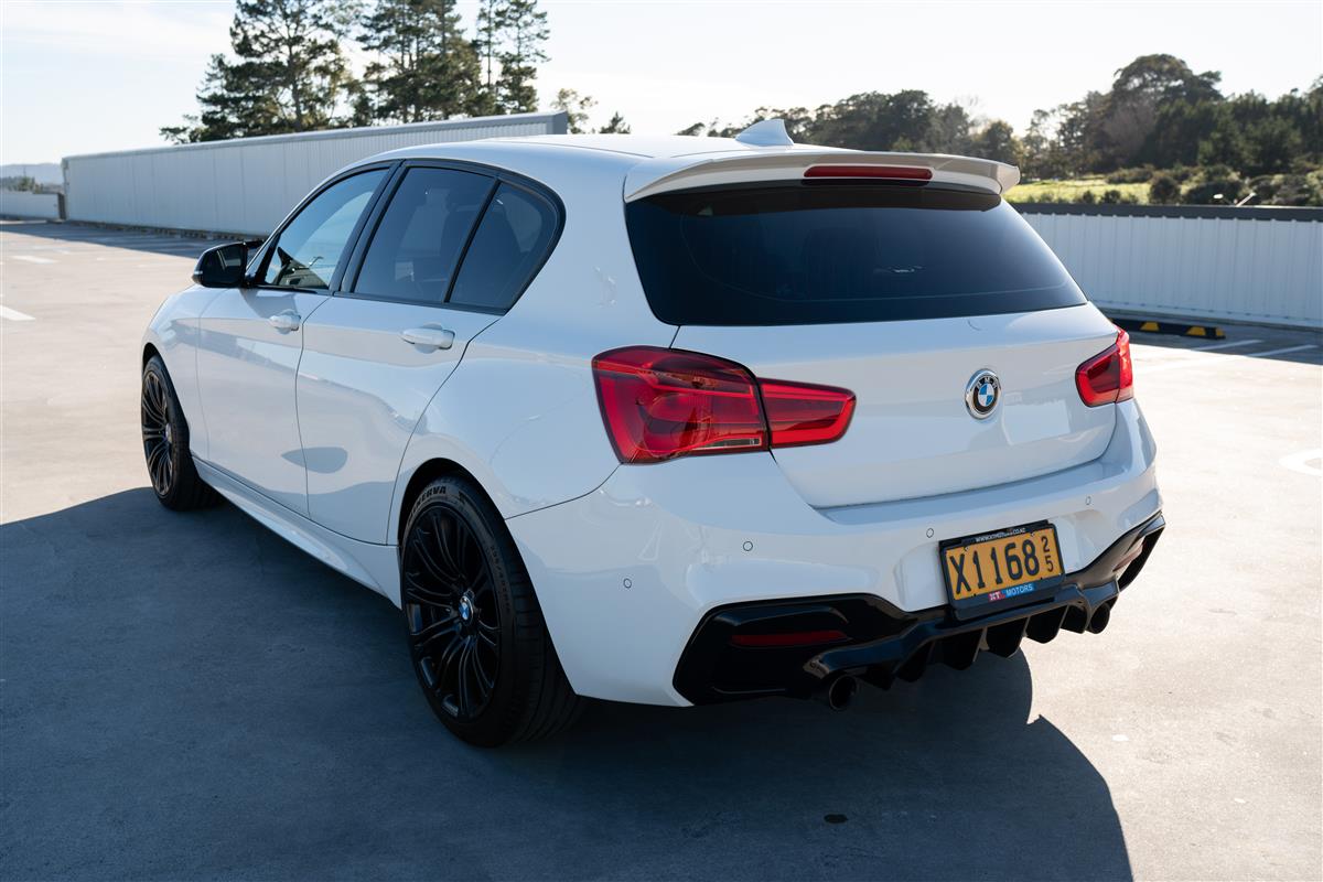 The BMW M140i M-Sport is a thrilling rear-wheel-drive hot hatch powered by a 3.0L turbocharged inline-six (335 HP, 369 lb-ft), paired with a quick-shifting ZF 8-speed automatic transmission. It combines sharp handling, a sport-tuned suspension, and a raucous exhaust note in a practical hatchback body. With classic BMW driving dynamics, a premium interior, and M Performance upgrades, it’s a last-of-its-kind RWD six-cylinder 1 Series before the switch to FWD.
