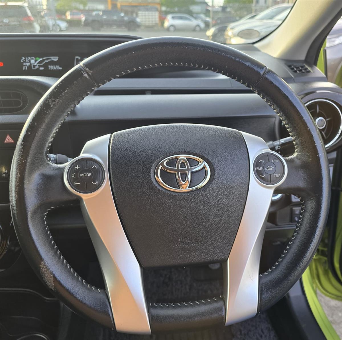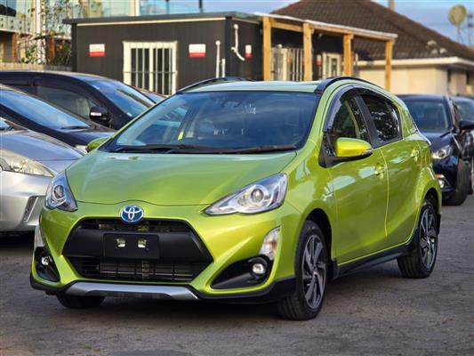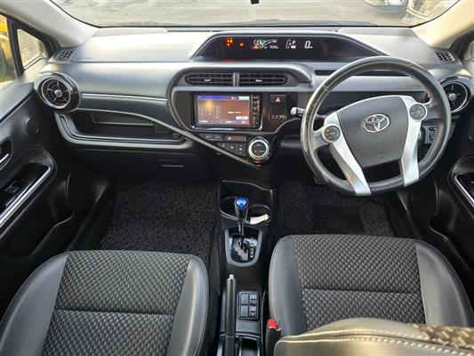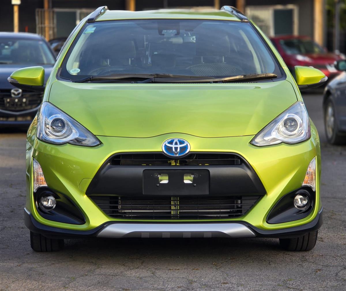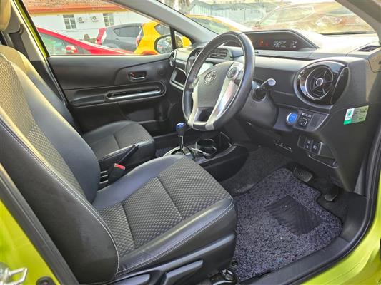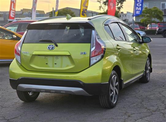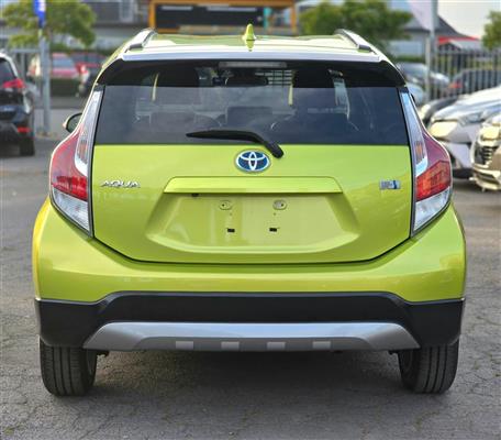 Turn heads with this stylish 2015 Toyota Aqua Green X-Urban Hybrid, combining sporty looks with outstanding fuel efficiency. Enjoy modern features like Push Start, Lane Assist, Collision Control, and a Reversing Camera for added confidence on the road. With Machine Face Factory Alloys, Fog Lights, and Half Leather Seats, this Aqua delivers the perfect mix of comfort, safety, and style.