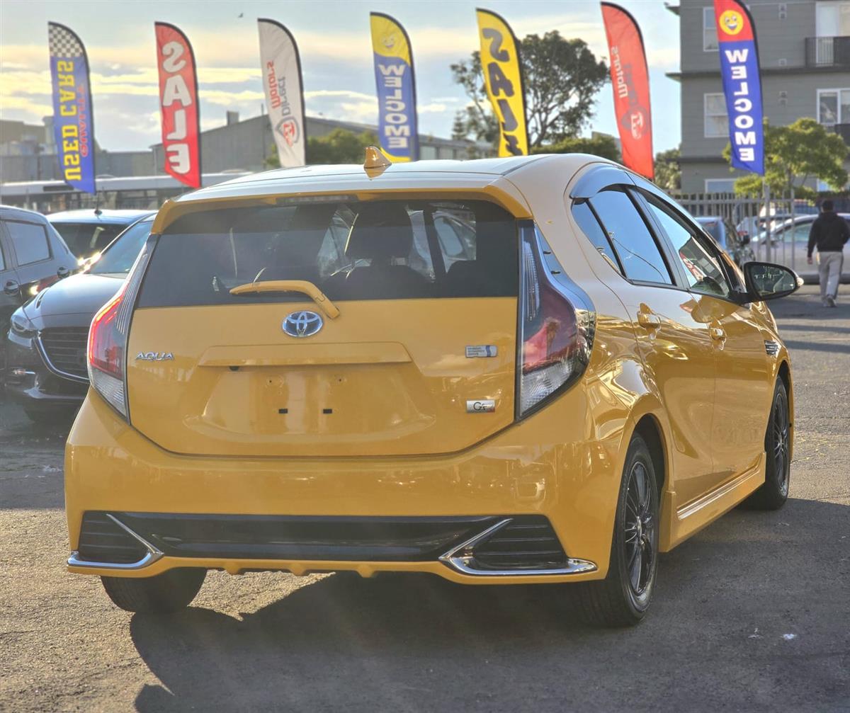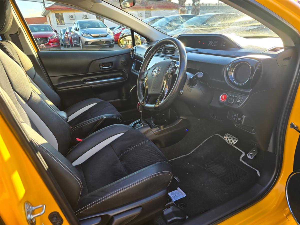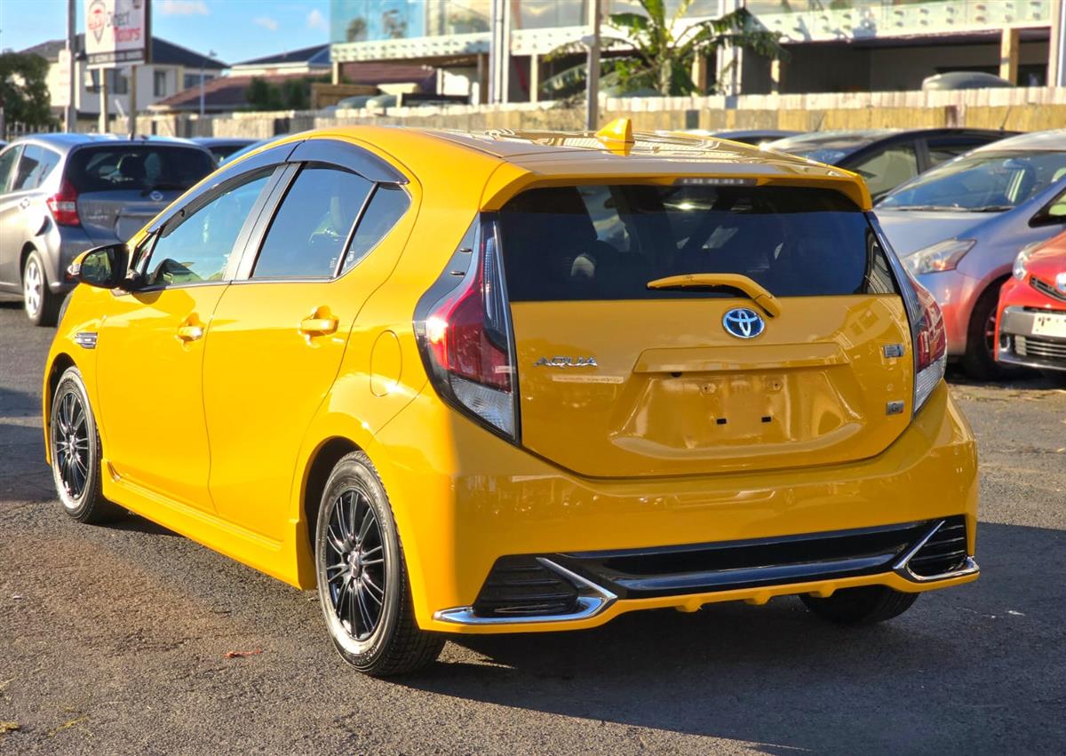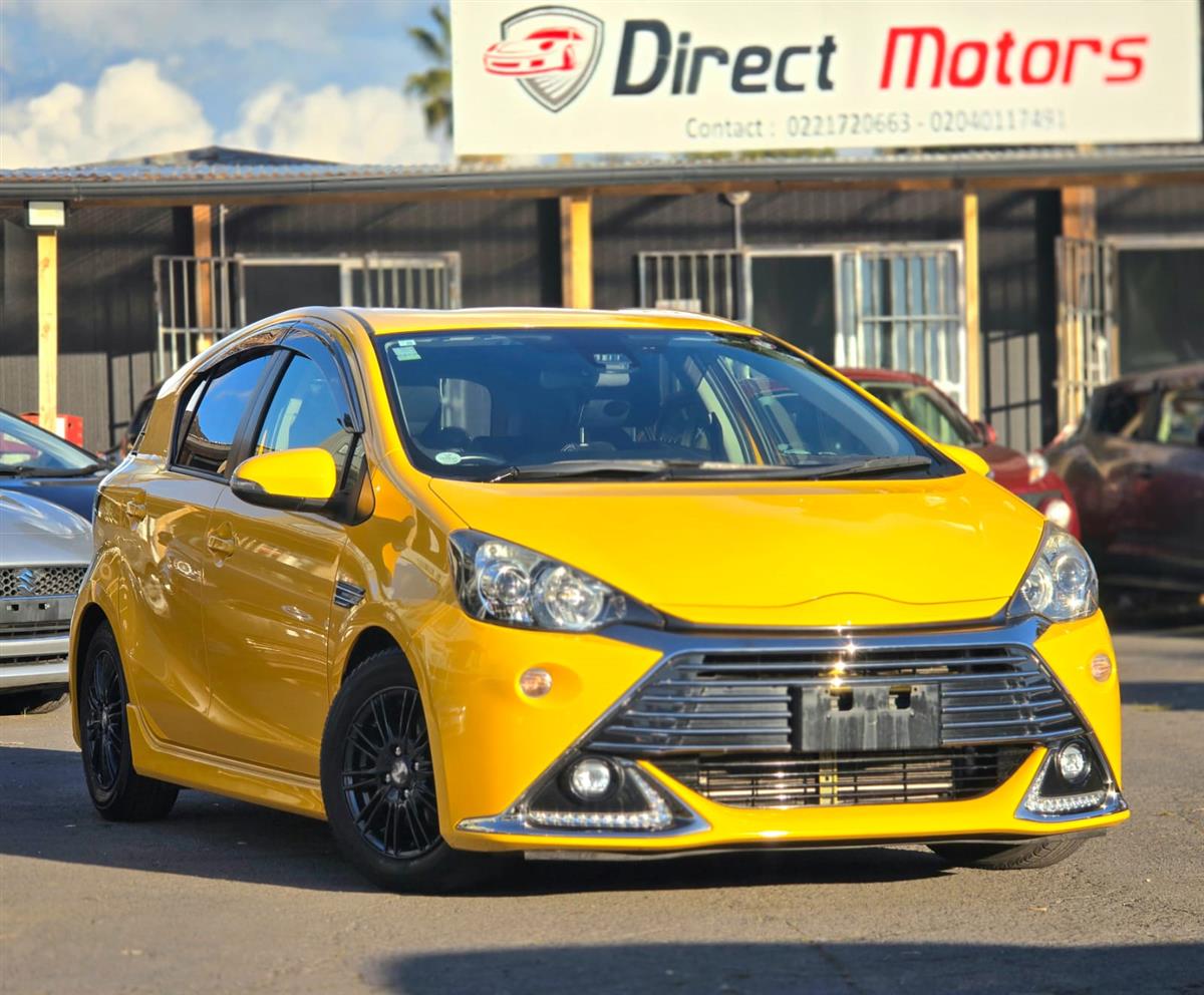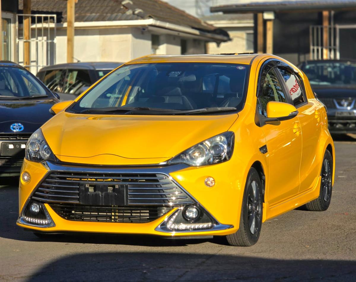 Stand out in style with the 2016 Toyota Aqua Yellow G’GS, a sporty hybrid that delivers both performance and efficiency. Packed with premium features like Cruise Control, Push Start, Half Leather Seats, Lane Assist, and Collision Control, it ensures comfort and safety on every journey. Finished with Aftermarket Black Mags and Fog Lights, this Aqua brings a bold and unique presence to the road.