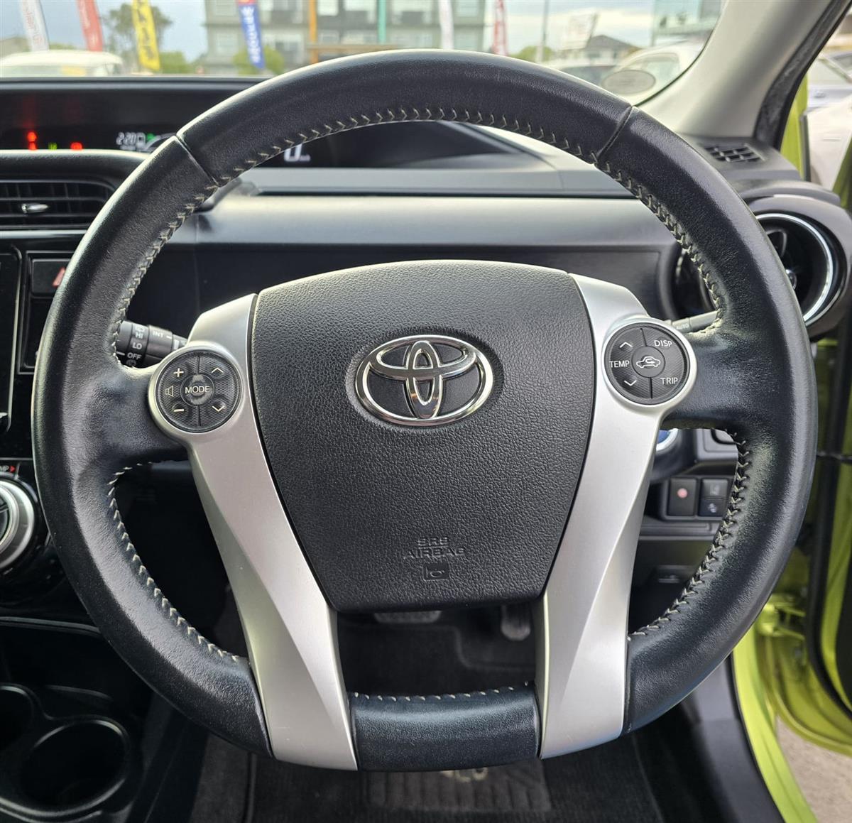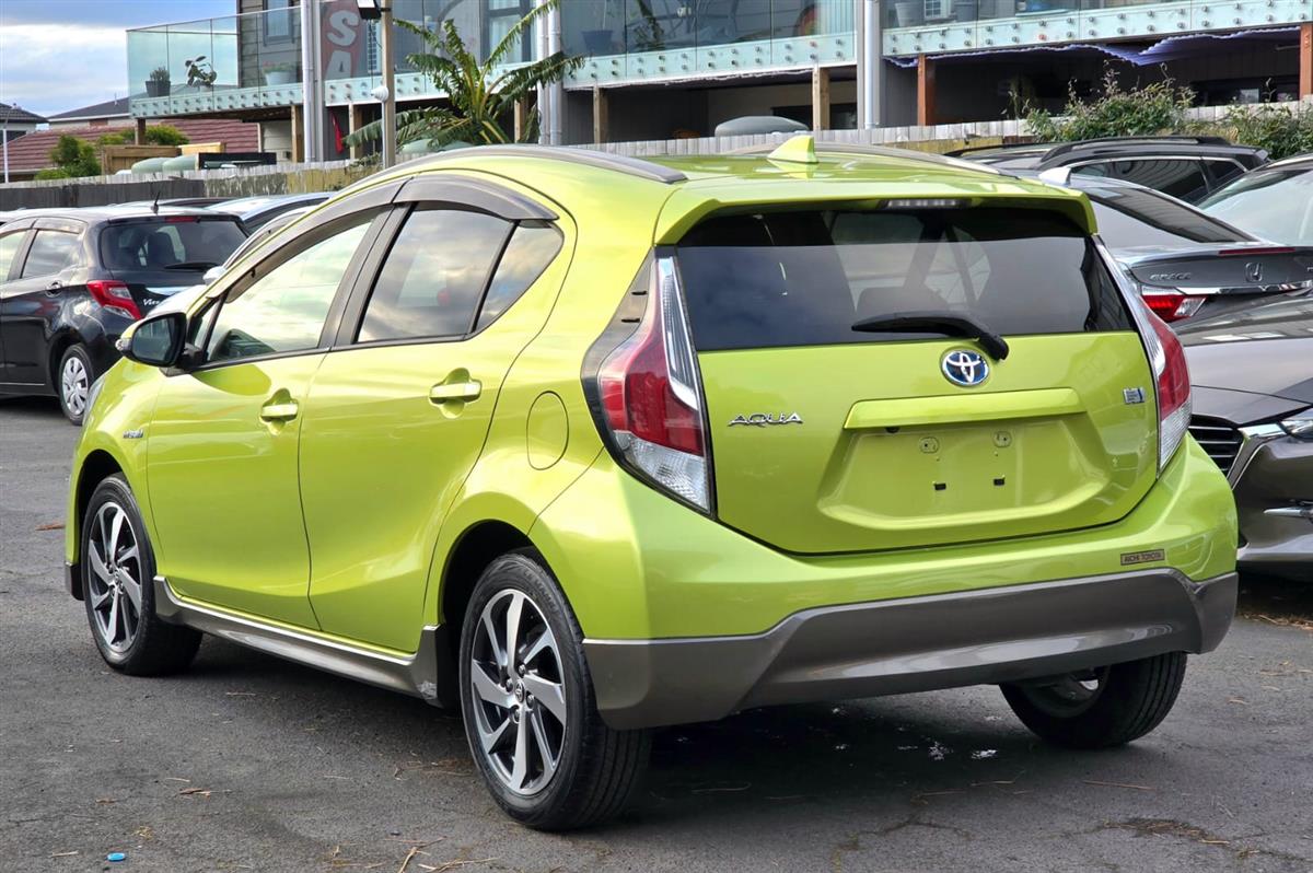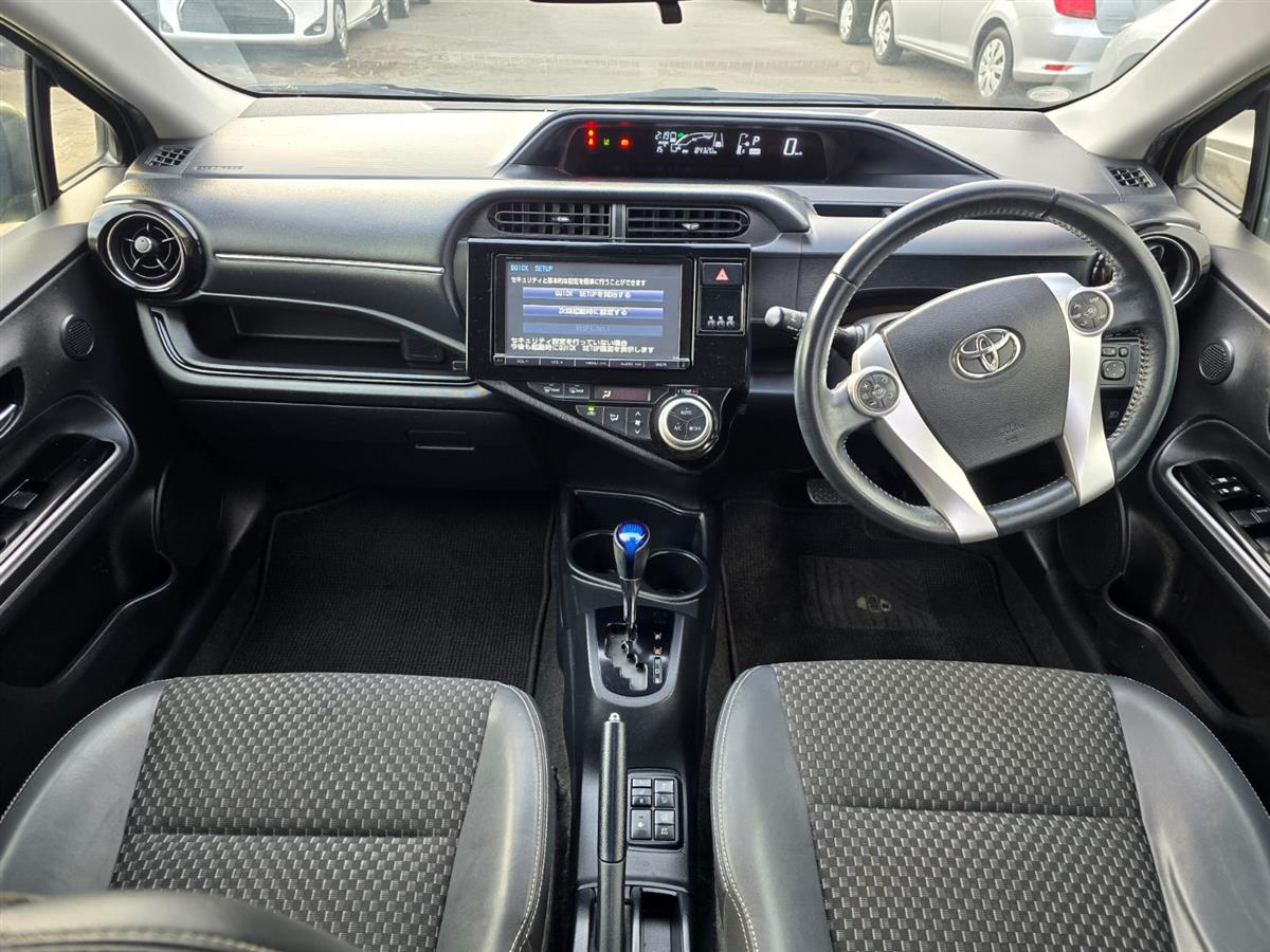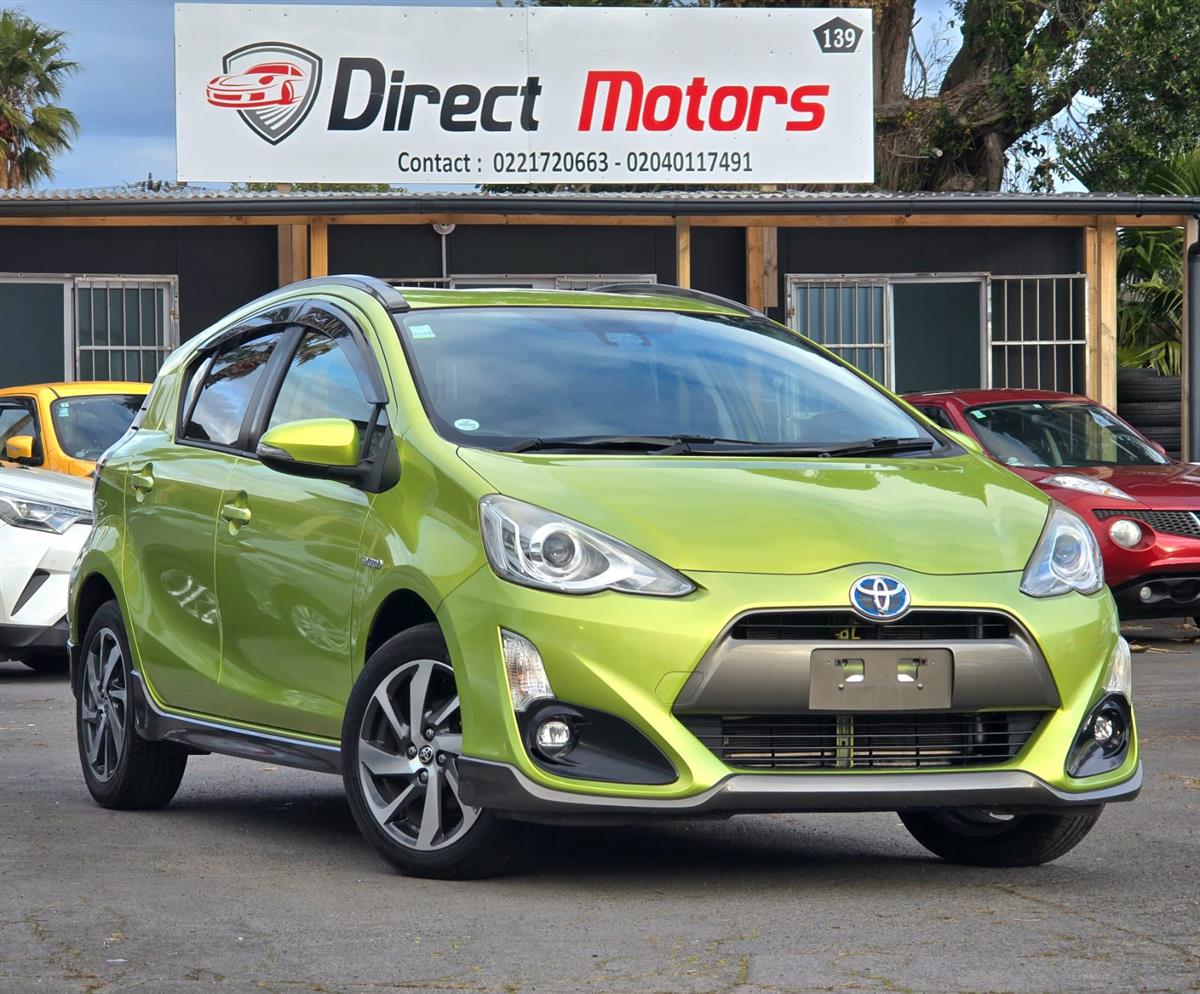 The 2016 Toyota Aqua Green X-Urban combines sporty styling with advanced safety features like Lane Assist and Collision Control for peace of mind on every drive. Inside, enjoy premium comfort with Half Leather & Heating Seats, Push Start, and a Reversing Camera for effortless convenience. Finished with Machine Face Factory Alloys and Fog Lights, this hybrid delivers style, safety, and fuel efficiency all in one package.