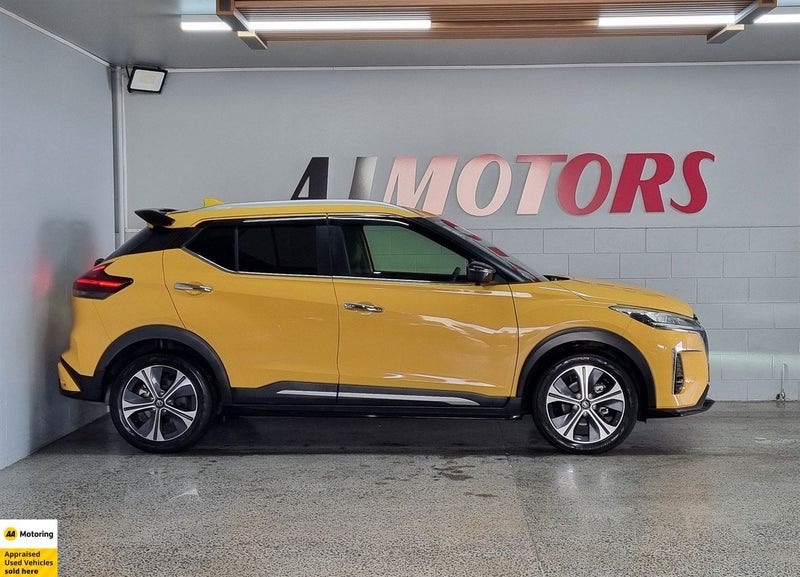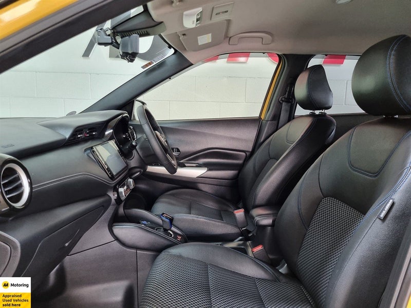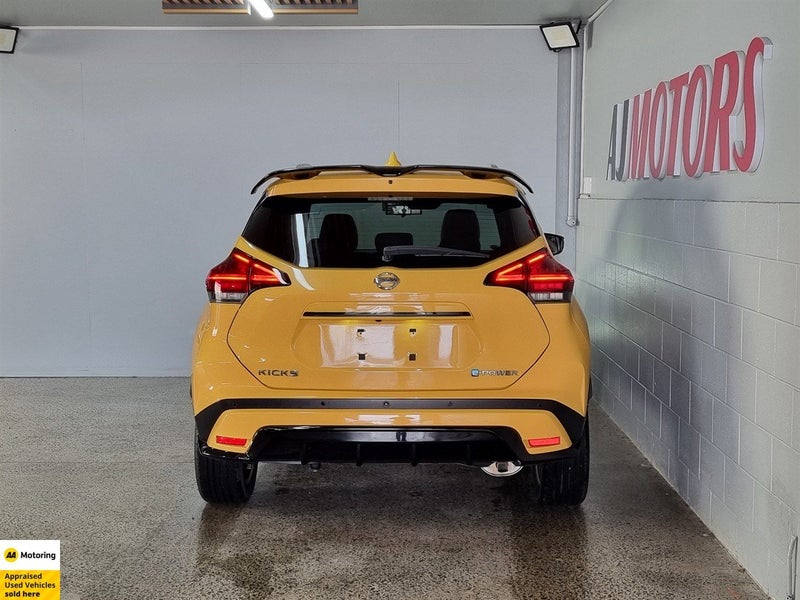 Stand out from the crowd in this stunning 2020 Nissan Kicks e-POWER X, finished in bold yellow with a premium black leather interior. With only 45,000 km on the clock and a near-new Auction Grade 5 rating, this compact SUV combines cutting-edge e-POWER hybrid technology with next-level comfort and safety features like ProPILOT and a 360 reversing camera. Its smart, stylish, and ready for anything.