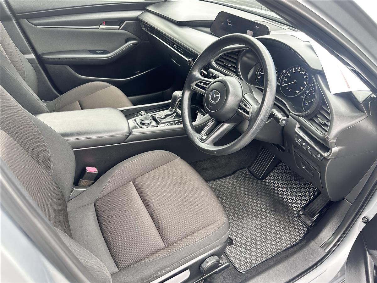 The 2019 Mazda Mazda3 in a sleek silver color embodies style and sophistication. This sporty hatchback boasts striking black alloy wheels that enhance its dynamic look. Its new shape offers a refined and aerodynamic design, powered by a responsive 1500cc engine for smooth and efficient performance. Equipped with modern conveniences like Apple CarPlay, cruise control for effortless highway driving,this vehicle perfectly balances functionality and aesthetics. A smart choice for those seeking innovation and a thrilling drive.