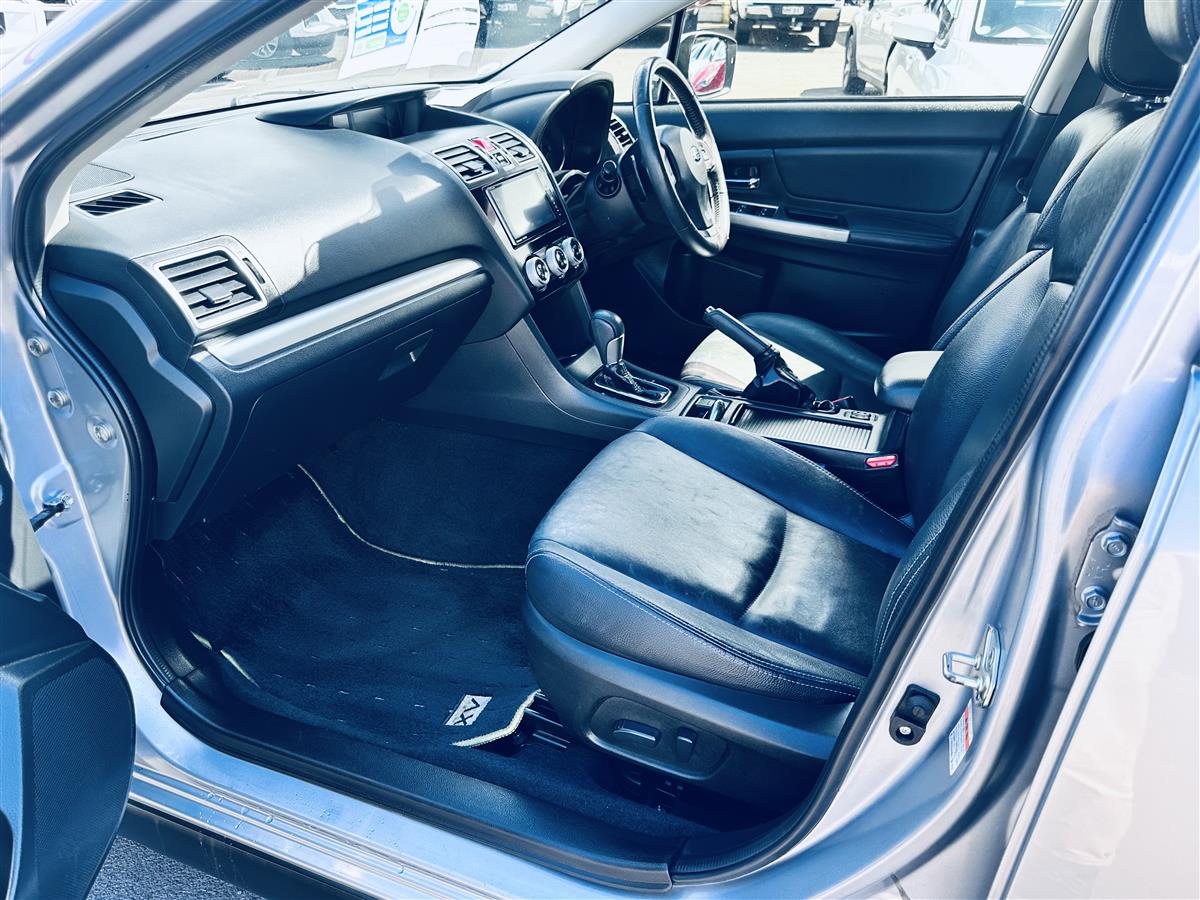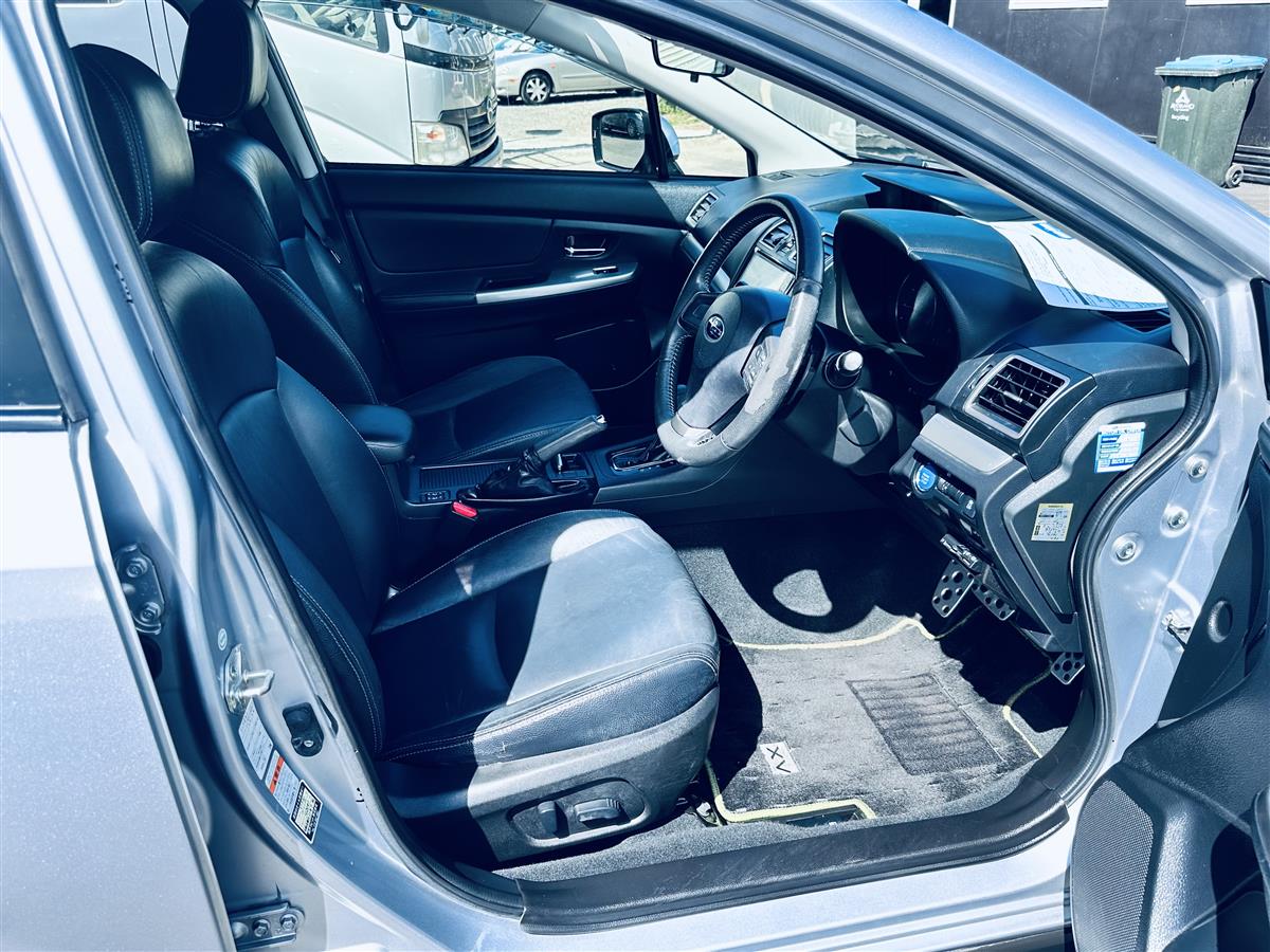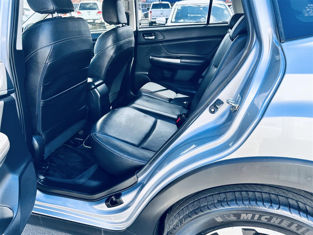 2015 Subaru XV in sleek silver – modern compact crossover with Subaru symmetry + AWD confidence. Features cruise control for relaxed touring, stylish alloy wheels, full premium leather interior with electric driver seat adjustment, and Subaru Eyesight safety tech delivering adaptive support + advanced driver assist. Practical, sporty + balanced – comfort, safety + efficiency in one versatile elevated driving height package ideal for both urban commute + weekend adventure.