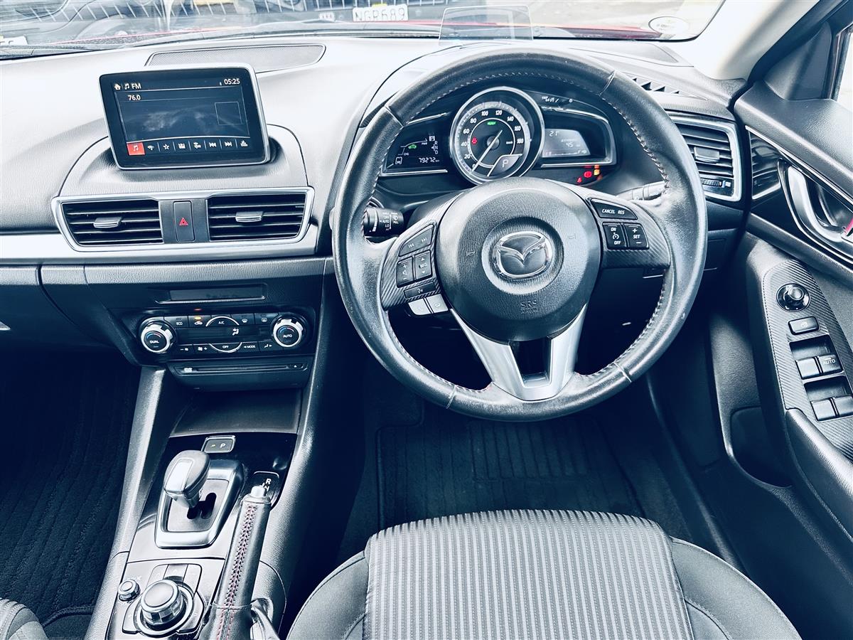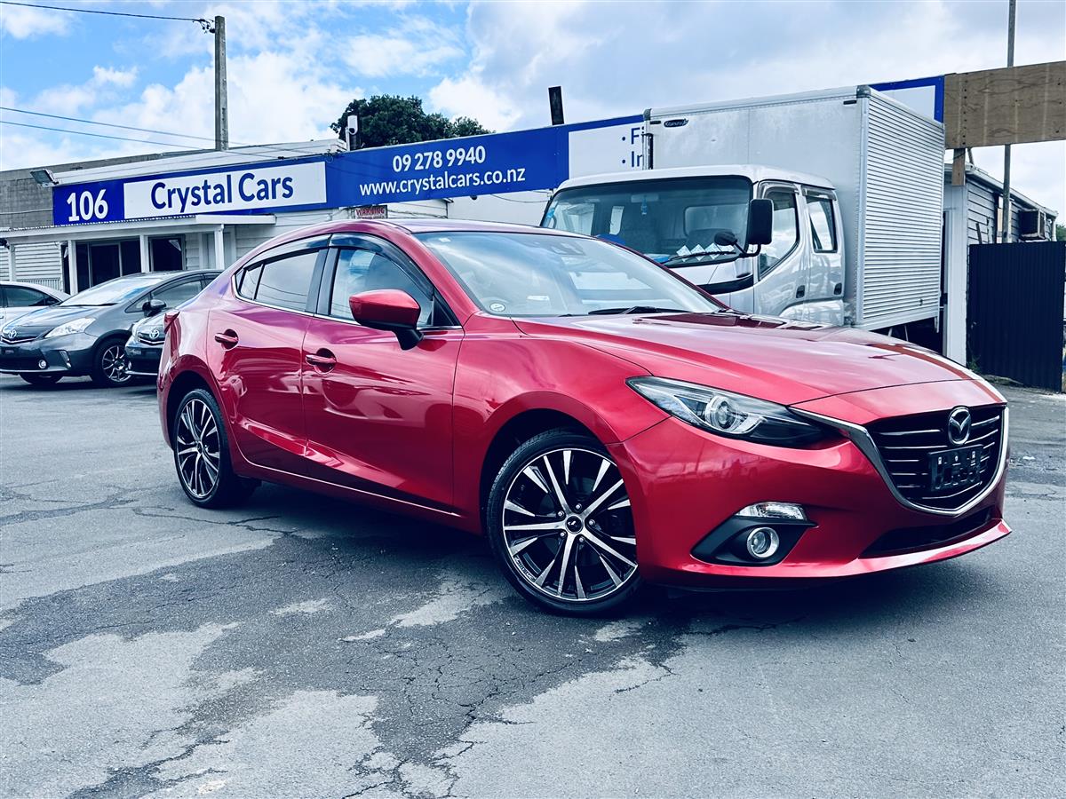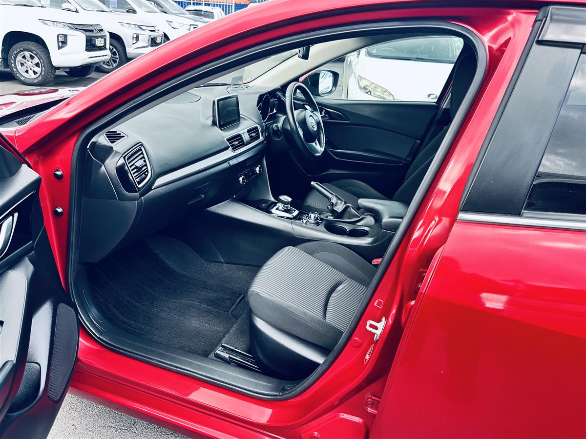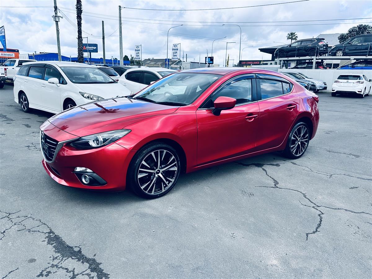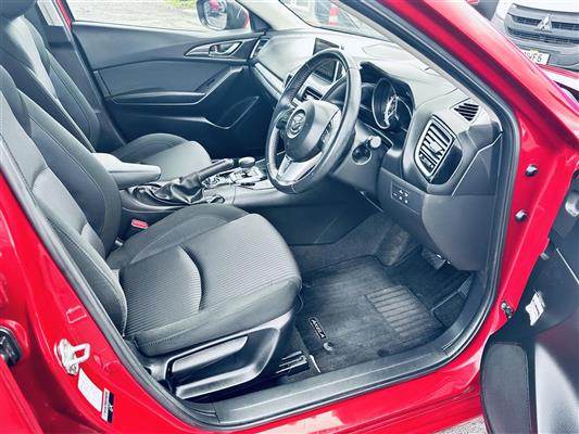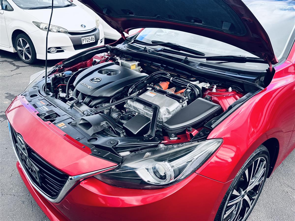 The 2014 Mazda Axela Hybrid S in stunning red combines sporty elegance with cutting-edge hybrid technology. Its aerodynamic body lines and aggressive stance give it a dynamic, athletic presence, enhanced by stylish black alloy wheels that amplify its modern and bold appearance. Equipped with advanced features like cruise control for effortless highway driving, this sporty hatchback exudes sophistication and practicality. The Axela Hybrid S is not just about looks—its hybrid system offers excellent fuel efficiency while delivering a responsive, spirited performance, making it ideal for drivers seeking style, comfort, and eco-friendly.