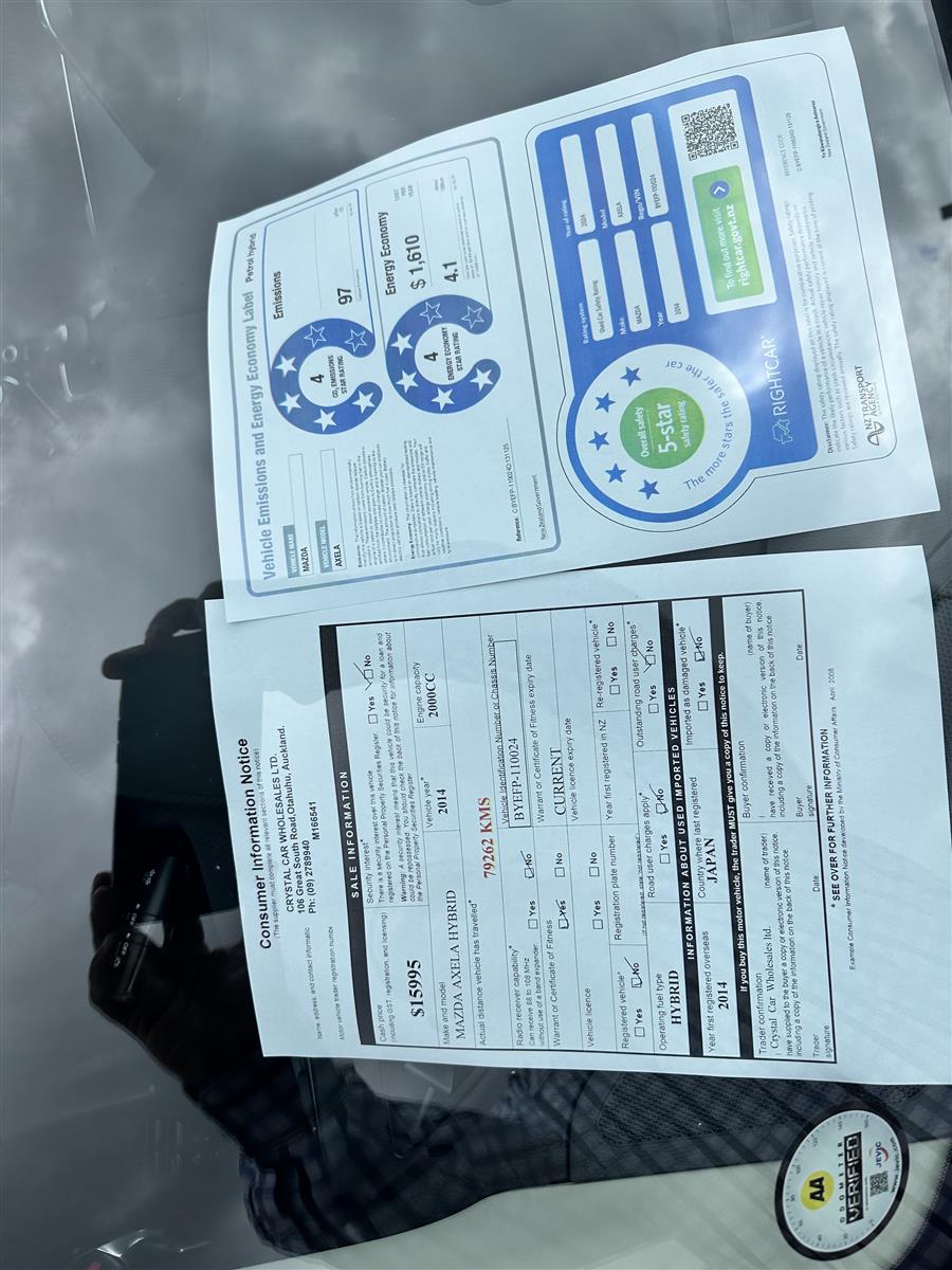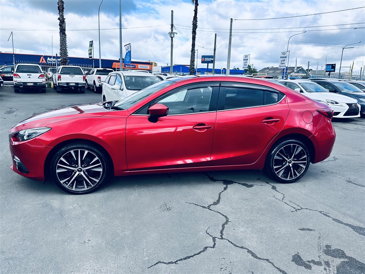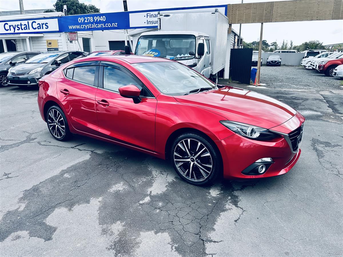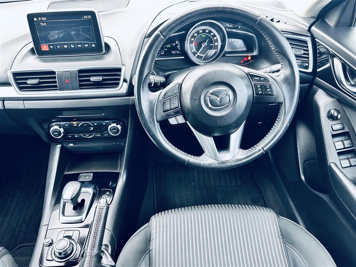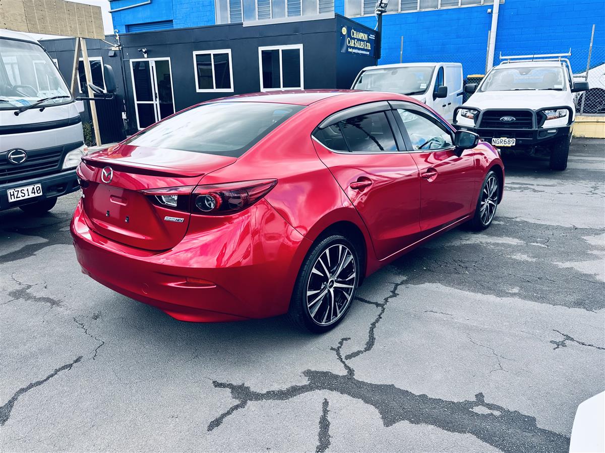 The 2014 Mazda Axela Hybrid S in stunning red combines sporty elegance with cutting-edge hybrid technology. Its aerodynamic body lines and aggressive stance give it a dynamic, athletic presence, enhanced by stylish black alloy wheels that amplify its modern and bold appearance. Equipped with advanced features like cruise control for effortless highway driving, this sporty hatchback exudes sophistication and practicality. The Axela Hybrid S is not just about looks—its hybrid system offers excellent fuel efficiency while delivering a responsive, spirited performance, making it ideal for drivers seeking style, comfort, and eco-friendly.