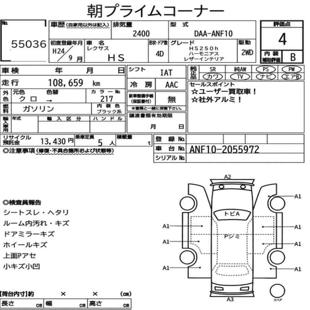 - Year 2012 Lexus HS250h
